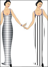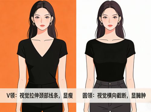 在这个“人均减肥焦虑”的时代,如果你问我最快的瘦身方法是什么 不是断碳,不是波比跳,也不是什么神奇的左旋肉碱。 而是——“欺骗”。 别误会,我不是让你去P图。我是让你利用人类那进化了几百万年、却依然漏洞百出的视觉系统 你的脂肪很诚实,但你的大脑很好骗。只要掌握几个硬核的视错觉原理,你就能在别人的视网膜上,完成一场“无痛减脂10斤”的视觉工程。 如果你去商场买衣服,导购大概率会告诉你:“穿竖条纹吧,显瘦。” 这时候请你礼貌地微笑,并在心里默念:赫姆霍兹错觉(Helmholtz illusion)。 早在19世纪,德国生理学家赫姆霍兹就做过一个实验:他发现两个完全一样的正方形,一个填满横条纹,一个填满竖条纹。结果,横条纹的那个看起来比竖条纹的更高、更窄。 ![]() 当你的眼睛看横条纹时,视线会不由自主地沿着垂直方向上下扫描,这种“纵向眼动”会拉长大脑对高度的感知;而看竖条纹时,视线会左右跨越,反而增加了横向的宽度感。 ![]() 选横不选竖: 尤其是细密、高频的横条纹衫,其实比宽大的竖条纹更显瘦。 竖条纹的正确打开方式: 除非那条竖线只有一两条(比如运动裤侧边的线条),那是“视线引导线”;如果满身都是竖条纹,你只会像一个行走的栅栏。 为什么V领比圆领显瘦?为什么尖头鞋比圆头鞋显腿长? 这要归功于缪勒-莱尔错觉(Müller-Lyer illusion)。 这个错觉告诉我们:在两条等长的线段末端加上不同方向的“箭头”,向内收缩的箭头会让线段显得短,而向外发散的箭头会让线段显得长。 ![]() 大脑会根据线条末端的指向来预判物体的延伸趋势。向外发散的线条会引导视线继续扩散,从而在认知中“脑补”出更多的长度。 ![]() V领大法: V领就是一个向下的发散箭头,它能引导视线向下延伸,给你的脖子“视觉续费”。 下摆开叉: 裙子或裤子的侧开叉,本质上是在腿部末端制造了一个向外的延伸信号,让腿部线条在视觉上直接“原地起飞”。 为什么有些姑娘明明不胖,背个迷你小包却显得虎背熊腰? 因为你触发了艾宾浩斯错觉(Ebbinghaus illusion)。 两个橙色圆圈大小一样 两个大小相同的圆,一个被一群大圆包围,另一个被一群小圆包围。结果,被大圆包围的那个看起来会比另一个小得多。 ![]() 人类的视觉感知是基于相对参考系的。你的身体就是中心那个圆,而你的配饰、领口、包包就是周围的参照物。 ![]() 大骨架拒绝“精致小巧”: 如果你骨架大,千万别拿那种装不下手机的迷你包,那只会反衬得你像个巨人。 以大衬小: 选择宽檐帽、夸张的大耳环、或者量感十足的大托特包。用周围的“大”来置换出你身体的“小”。 大家都知道“黑色显瘦”,但你知道为什么吗? 这叫光渗效应(Irradiation illusion)。 当你观察一个亮色物体时,强光会刺激视网膜上的感光细胞产生“神经兴奋扩散”,导致亮色区域的边缘向外扩张,侵占周围的暗色区域。