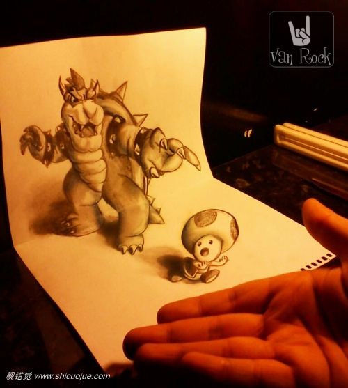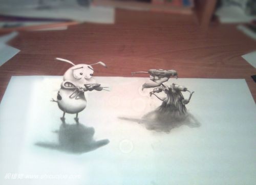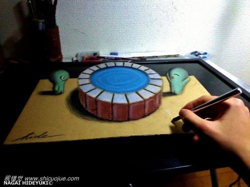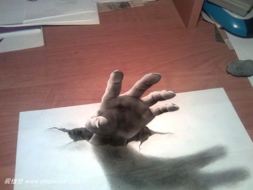 3d铅笔画与3d地画的表现方法,以及绘画原理,透视关系都相同,唯一不同的只是其绘制的材料,画面载体,以及画幅的大小不同而已。