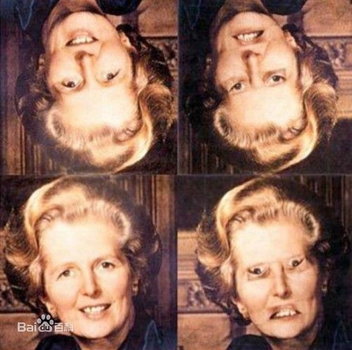 这是由荷兰摄影师Anuschka Blommers 和Niels Schumm 处理过的照片,你能发现这几张图片中的人有什么不对劲吗?人像是倒的,没错,但不只是那么简单,再仔细看看吧。 怎么样,发现问题了吗?如果还没有,那就用图片浏览工具把它们翻转180度再看看。结果是不是让你大跌眼镜? 这几张照片验证了著名的“撒切尔效应”。人类具有面部识别能力,大家可以根据眼和嘴等特征来识别同伴,一旦这些特征发生变化,我们马上就能发现其中的不同,但如果把同伴的面部照片倒立,就很难发现异样的存在。人类和其它灵长类动物都具有“撒切尔效应”。 撒切尔效应,也叫撒切尔错觉,是这样一种现象:在倒着的脸上的一些局部特征的变化很难被人发现,而这样的变化如果发生在正立的脸上则非常明显。名字来源于英国首相玛格丽特·撒切尔,她的脸据称最具有这样的特征。这是由彼得·汤普森首先提出的。 在心理学研究中,这种现象被称为撒切尔错觉或效应(Thatcher Illusion/effect), 是英国约克大学教授彼得·汤普森(Peter Thompson)在1980年发现的。撒切尔夫人是当时家喻户晓的人物,著名的铁娘子,主导了英阿战争并取得胜利,她的容貌大家自然很熟悉。然而,如果把 她的头像倒过来,改变几处明显的面部特征,一般人瞬间很难判断出来。一旦恢复正常的方向,这些特征就很突出。 这 样的错觉是由人类天生的面部识别机制决定的。我们常听说某某人在哪里“我一眼就认出来了”,这“一眼”可能不到一秒钟。我们在观察别人面部时,是一张脸作 为整体来看待的(holistic processing),而不是简单地记忆每个器官的具体特征。当然,如果某个人面部某个构造很特殊,譬如长长的鹰钩鼻,也容易单独处理。 面部识别的“整体观”必然导致对倒立图像的不敏感,因为脸的整体结构完全颠倒了,这种现象也被称为面部倒置效应(face inversion effect),在研究其他灵长类动物面部识别机制时经常用到。 面部倒置能难倒普通人,而人面失认症(prosopagnosia)患者就不存在多大困难。人面失认症由脑部特定区域的损伤导致,也有人说普通的人群中有超过2%的人不同程度地患有此症。他们看人时不存在整体概念,而是把若干具体特征结合起来“分析”。 不知道你是怎样看别人的脸,或许你也是人面失认症患者,但你自己也认识不到。 |