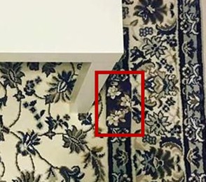 是的,iPhone 就藏在右边桌脚旁的地毯上,如果仔细看的话,勉强可以看到 iPhone 萤幕上的花色和地毯花色还是有些许不同,所以不小心露出马脚来,