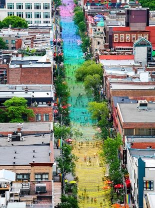 你的天空是什么颜色呢?晴朗无云的蓝、总为浮云能蔽日的灰,或是晚霞时分晕染的红,每个人头顶有自己的一片天,而他们的天空是属于彩色的。 景观建筑和城市设计团队 Claude Cormier + Associés,一直以来,将各个地方改造得更美更好为使命,这次趁着一年一度举行于加拿大蒙特娄的 Aires Libres 庆典,打造一条长度超过 1 公里的彩虹苍穹,标志着该节来到第十个年头,以及庆祝蒙特娄同性恋村成立的 35 周年。 Claude Cormier 的作品「18 Shades of Gay」以 18 万颗树脂彩球,依照 18 个颜色等量按顺序排列,点缀 Catherine's Street 的上空,让造访该节庆的游客可以享受到散步于彩虹下的欢乐气氛。而且为了使访客体验更悠閒的氛围,当地还将该街道变为只限行人的步道。 其实这次的彩虹苍穹,是 Cormier 在 2011 年创作的「Boules Roses」续作,当时的作品为一片粉红色,远远看就像是樱花漫天飞舞。Cormier 如此叙述了他艺术作品的变革:「为了反映同性恋文化的发展和 LGBT 群体持续增加成员,重新定义的彩球作品是毫无疑问的艺术选择。某个程度上来说,18 Shades of Gay 的概念也象征此群体的不断革新。」 为了让色彩能无缝接轨,设计团队以交叉混合色线的方式,使得作品一气呵成。 搭配 150 棵垂柳树,这些彩球是不是很像桔子呢?XD 走在如此缤纷的作品下,每个人都可以找到属于自己的「有色」天空,有计画前往加拿大蒙特娄的朋友,不妨在 9 月 25 日前,到当地拍些浪漫的放闪照吧!(准备墨镜) |